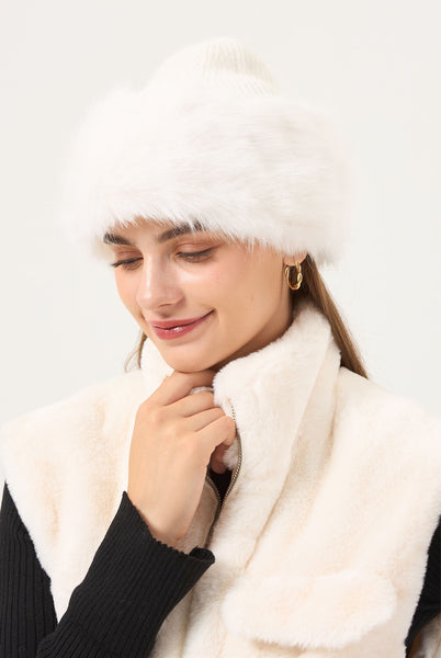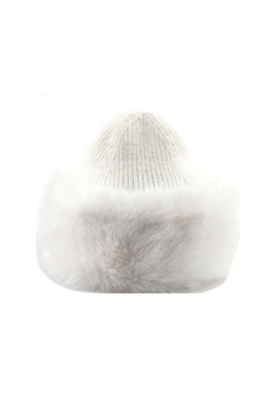 Mjúk og falleg loðhúfa, mjallhvít að lit og tilvalin í vetur. Húfan er þægileg og gervi loðkanturinn setur falleg svip á húfuna. Gerð úr viscose og ull og er mjög mjúk viðkomu. Við mælum með þessari í vetur, ótrúlega falleg húfa hér á ferð!